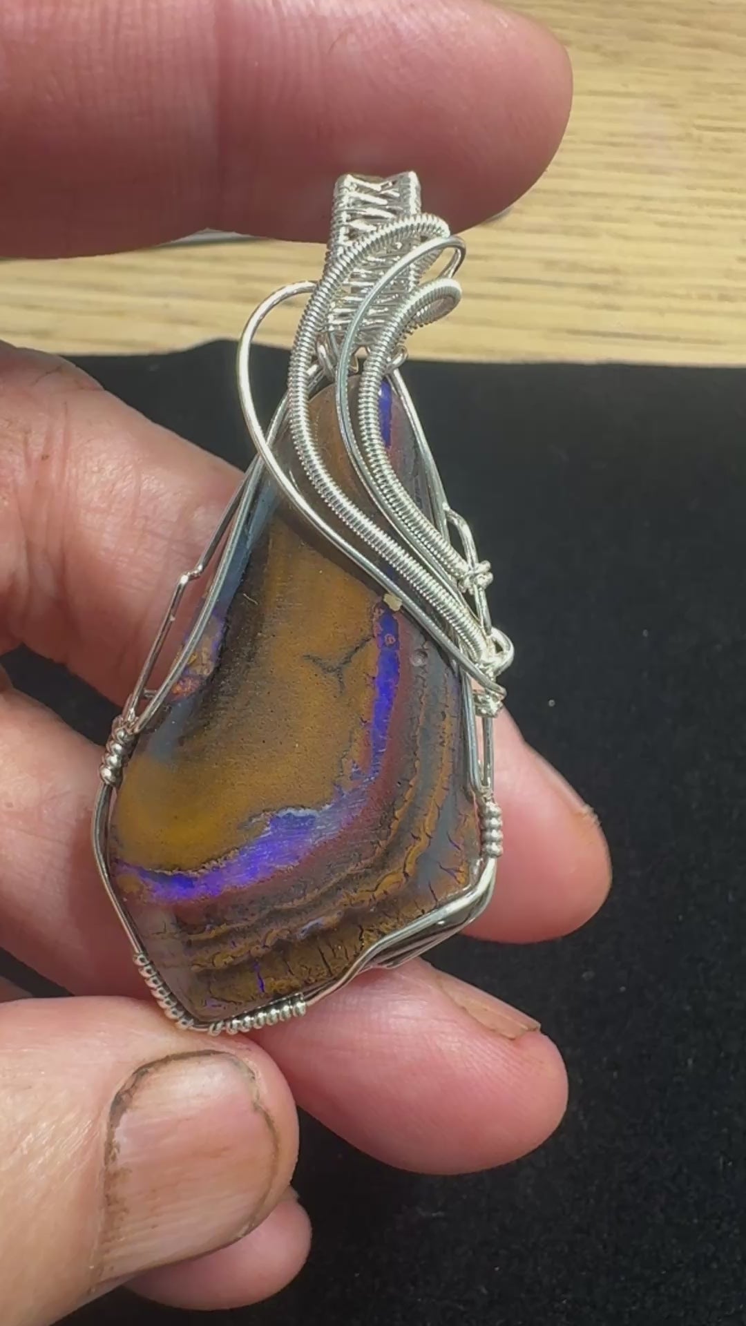 beautiful sterling silver wire exquisitely wrapped winton boulder opal